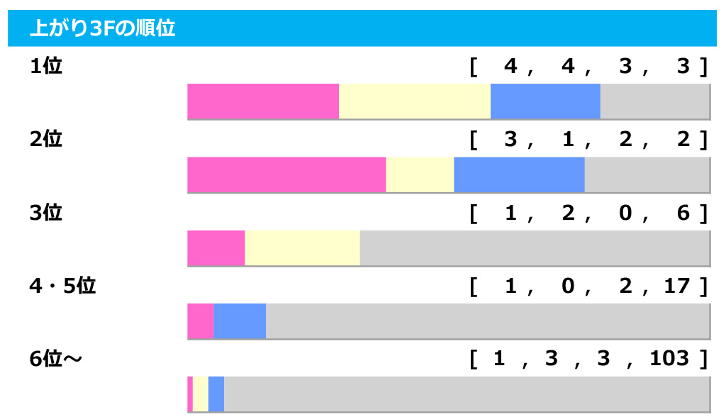 また、上がり3Fの順位ごとの成績は下記の通り。