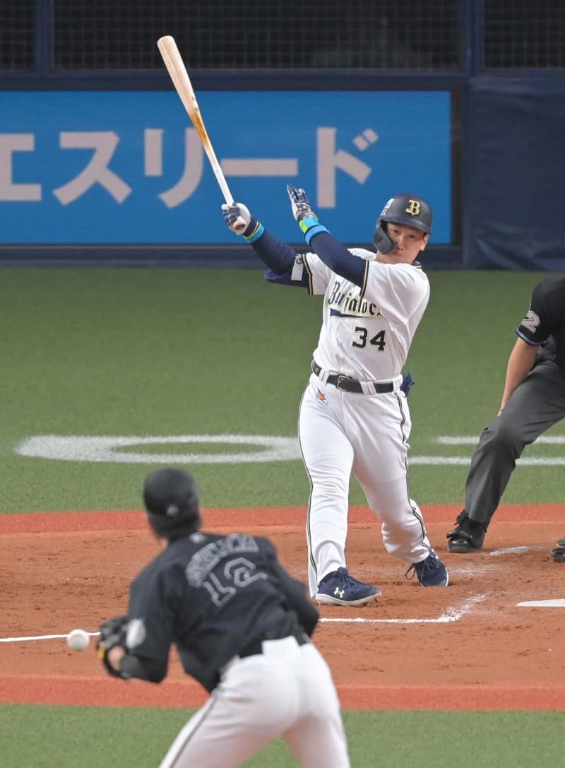 右尺骨骨折から復帰のオリックス・吉田正 三回に中前打を放つ