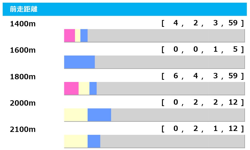 1400m 【4-2-3-59】勝率5.9%、連対率8.8%、複勝率13.2%
