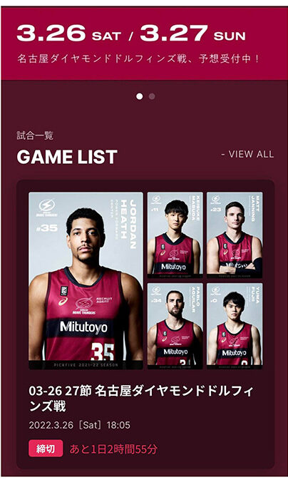 活躍度合いの評価は、「シュートをどれだけ外さず決められたか、リバウンドやアシストやブロックをどれだけ決めたかなどのゲーム中のスタッツかあら算出されたEFFと呼ばれるもの」で決まる。EFFはリーグでも採用されている活躍指標でもある。また選手各々の人気倍率も表示される。他のユーザーも選んでいる選手であれば倍率は低く、選ばれていない選手であれば倍率が高くなる。「競馬のオッズのように他の参加者が予想していない選手を当てるとスコアが高くなる」システムだ。確実に勝ちに行くか、大穴を狙いに行くか、この時点から既に楽しめる。さらにこの予想は試合開始5分前まで行うことができる。会場で観戦する方は、実際に選手たちのウォーミングアップやシュート練習の様子を見て、その日の調子や対戦チームのコンディションなどを踏まえ予想ができるのだ。藤掛さんは「これまでにない体験を。そして点を取る以外の選手の魅力も知ってもらえたらいい」と期待を込める。