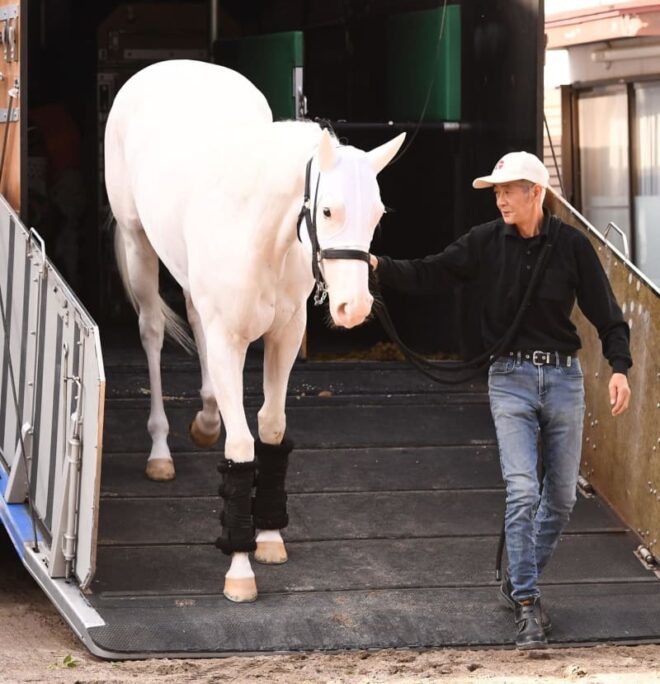 「安田記念・G1」(4日、東京) ソダシは3日、7月に引退する今浪厩務員とともに東京競馬場入りした。…