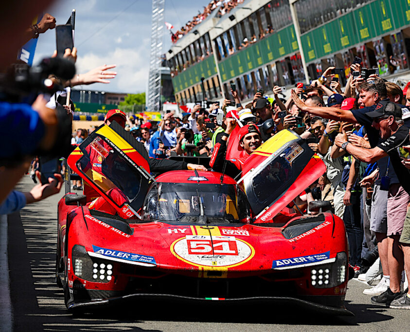 24時間を走り抜き祝福を受けるフェラーリ51号車 (C) Getty Images