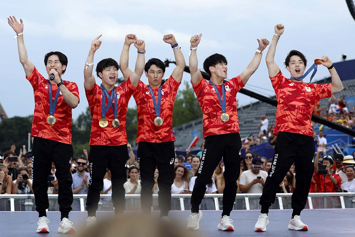 体操男子団体総合で金メダルを獲得した橋本大輝、萱和磨、谷川航、岡慎之助、杉野正尭が1日(日本時間2日)、「チャンピオンズ・パーク」に登場。5人はメダリストと一般客が触れ合い、祝福を受ける場でも大人気。英語でスピーチし、会場を盛り上げた。
