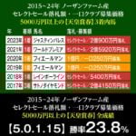 今年のリピーターとして注目されるのは、2022年1着のこの馬。セレクトセールで2億900万円の落札価格もデータに合う。前哨戦・大阪杯で、6着だったことで人気が落ちそうなのは大歓迎。1年あけての勝利といえば1993年・95年のライスシャワーだけだが、ここはデータを信頼したい。