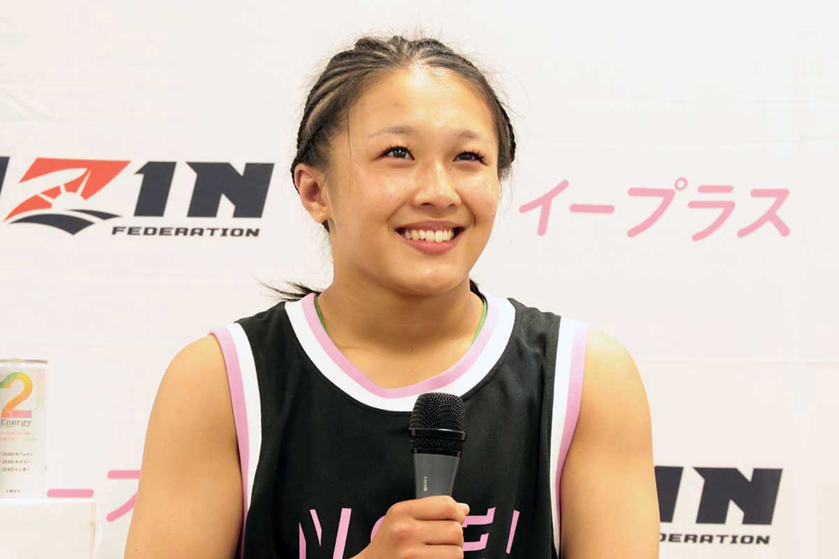 第10試合でシン・ユジンに1ラウンド一本勝ちを収めた女子スーパーアトム級王者の伊澤星花が試合後インタビューに登壇。第8試合で一本勝ちした20歳の須田萌里について言及した。