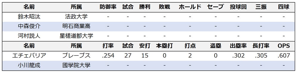 ドラフトでは1位で法政大の左腕・鈴木昭汰を獲得した。最速153キロの速球と多彩な変化球で開幕から先発ローテーション入りが有力。春季キャンプでは今季の新人では最速となる実戦デビューを果たし、練習試合でも投げる度にその評価を上げた。4位の河村説人は亜細亜大を中退後、星槎道都大から24歳でプロ入りした右腕で、こちらもフォークを武器に三振の取れる投球で開幕1軍の可能性が高い。2位の中森俊介は高卒だが完成度の高い右腕で、早い時期の1軍昇格もありそうだ。