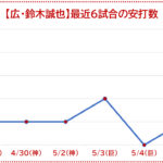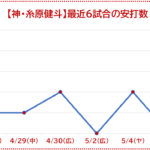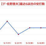 30日〜5日の試合で、24打数11安打の打率.458と無双した。しかも3試合連続でマルチヒットを放つなど手が付けられない状態になっており、打率ランキングでも2位に浮上している。次戦以降も各打席に注目だ。