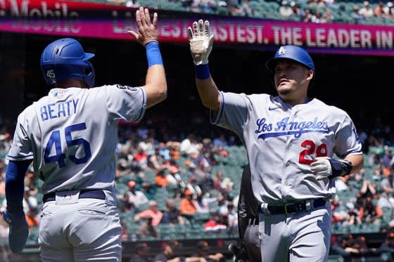 「7番・左翼」で先発出場、2回に先制の右前適時打を放った■ドジャース 11ー5 ジャイアンツ(日本時…
