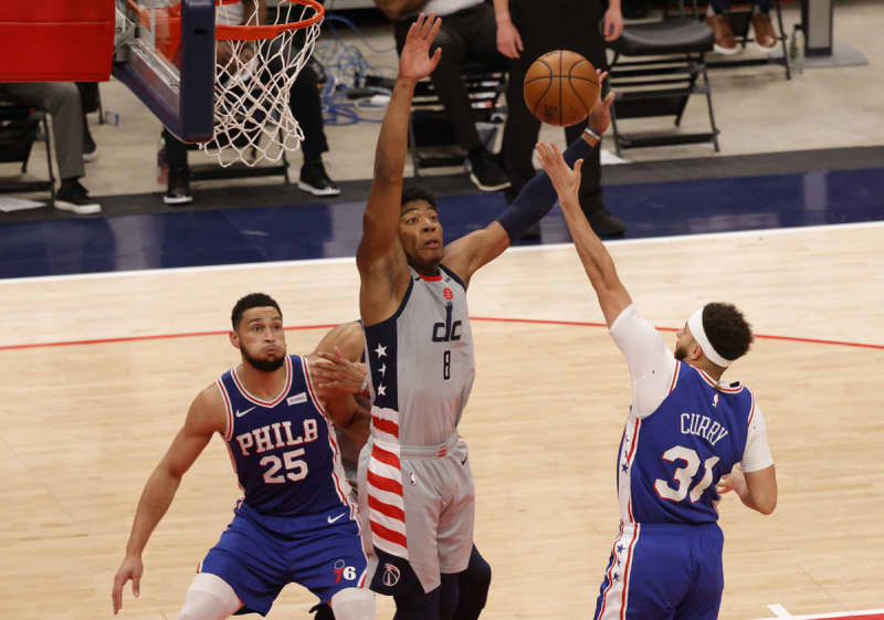 29日(日本時間30日)の米プロバスケットNBA、プレーオフ1回戦の第3戦で東地区8位のワシントン・…