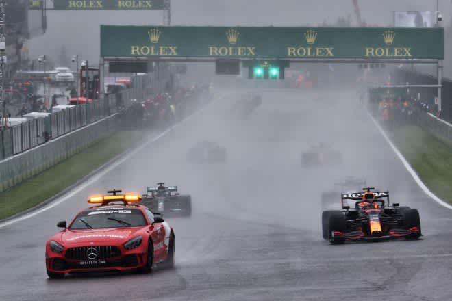 悪天候による3時間の中断を挟み、3周目に終了 フェルスタッペンが優勝、2位ラッセルが初表彰台【決勝レポート/F1第12戦】