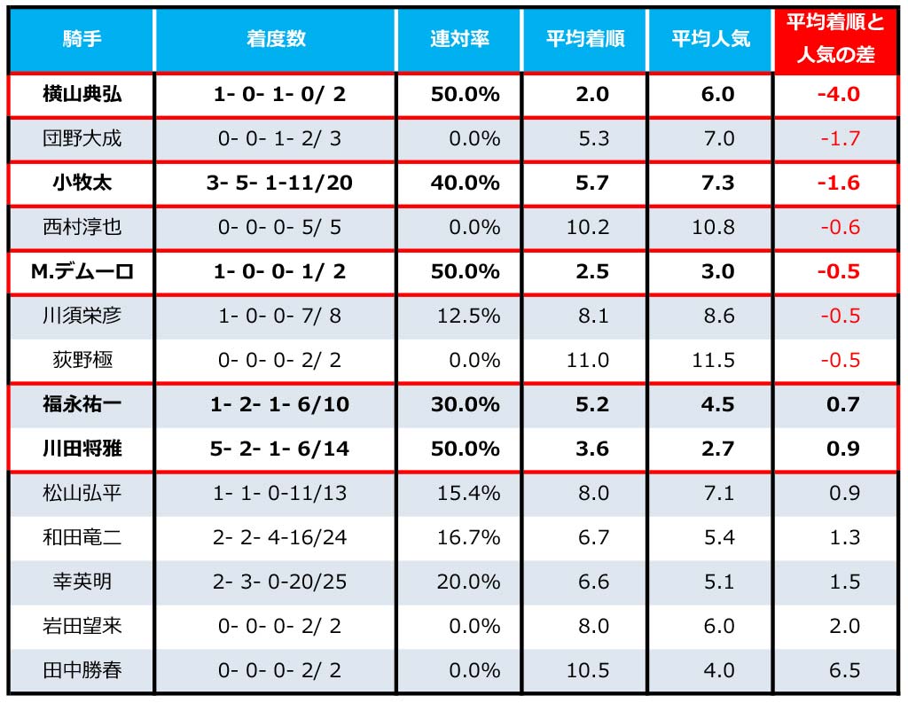 [2000年以降]小倉芝1800m戦(OP以上)の騎手別成績