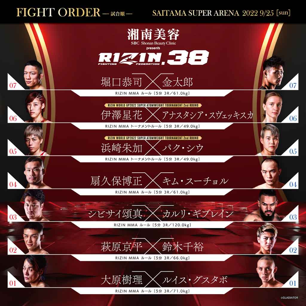 【RIZIN.38】9月25日 対戦カード、試合結果、中継情報一覧