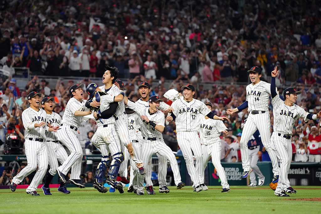 優勝が決まりクローザー大谷翔平に駆け寄る侍ナイン(C)Getty Images