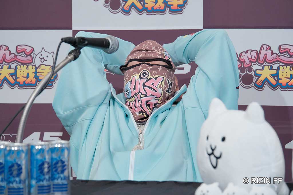 【RIZIN.45】会見“ぶち切れ退出”の芦澤竜誠、覆面姿で計量パス 太田忍とグーパン交わす