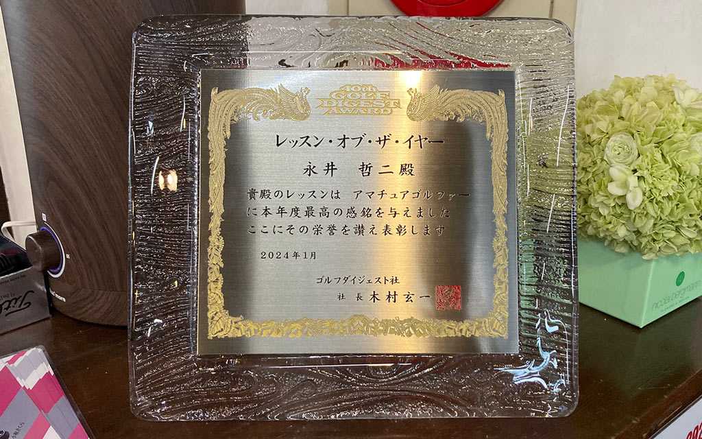 レッスンオブ・ザ・イヤーを受賞した際の盾(撮影:野洲明)
