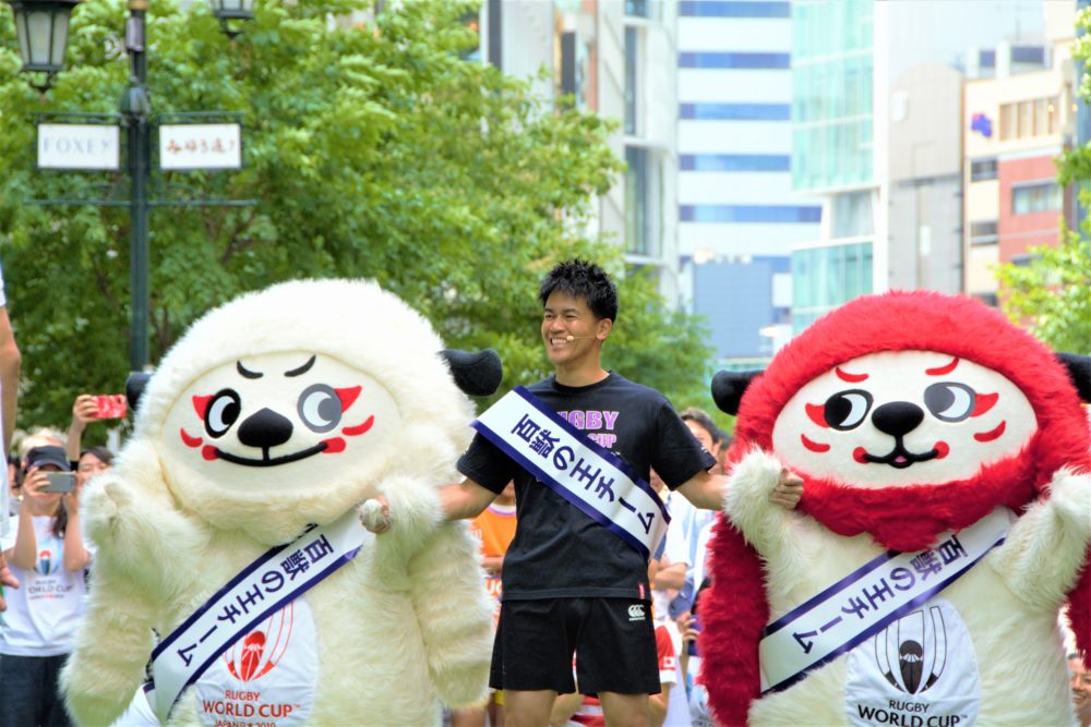垣永真之介がマスコットに抱きつかれ「母性が爆発しました」…ラグビーW杯PRイベント